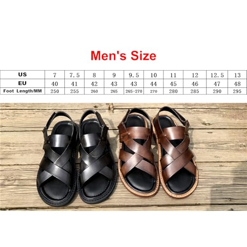Men's Leather Sandals With Hook And Loop Summer Open Toe Dress Sandals Comfortable Beach Slippers 7