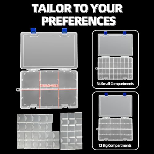 • 👍【Removable Dividers】Most of these small plastic boxes grids can be moved, you can creat 6 to 34 compartments to fit individual need. ●Please note that some dividers are not detachable.Please refer to the picture for details.The latch is separable design and can be reattached if they come off.
