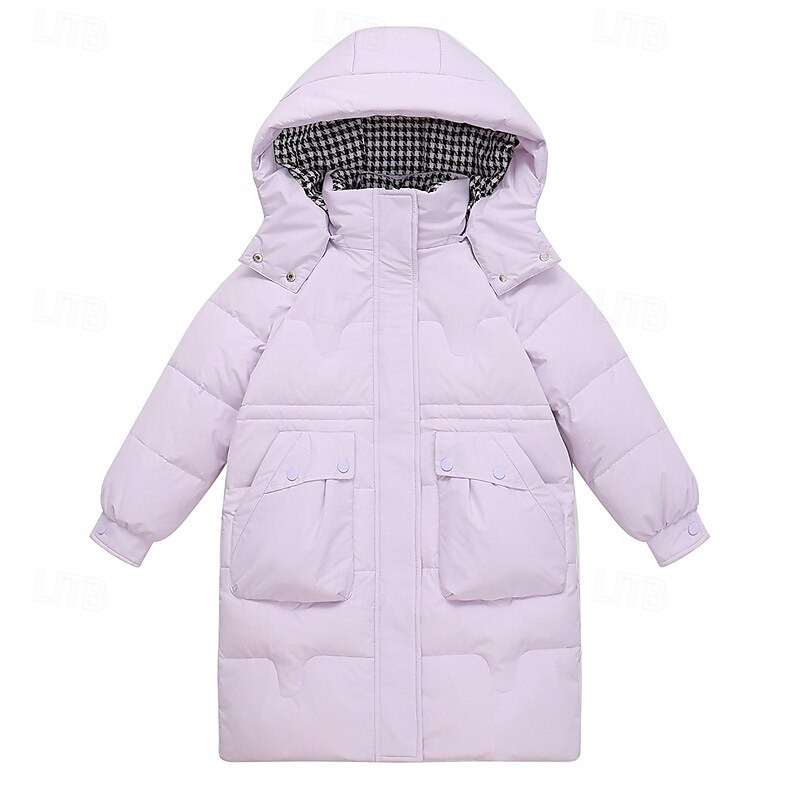 More information about Kids Girls' Down Jacket Outdoor Jacket Puffer Jacket Solid Color Fashion Keep Warm Windproof Outdoor Coat Outerwear 4-12 Years Fall Black Pink Purple