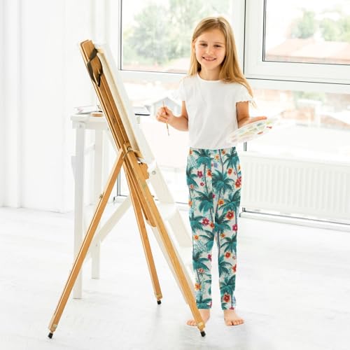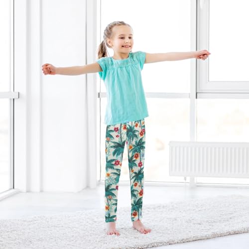 Palm Trees Hibiscus Flowers Girls Leggings Ultra Soft Compression Yoga Gym Pants for Kids 4-10T 5