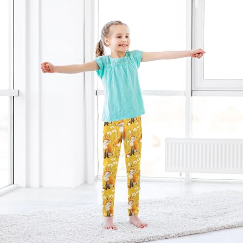 Daisy Fox Yellow Design Girls Leggings Soft Stretch Workout Yoga Dance Pants for Kids Casual Tights 4