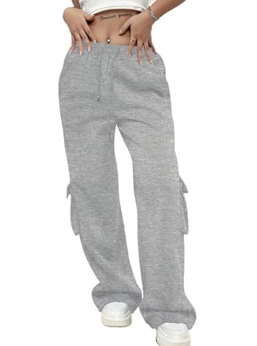 SOFIA'S CHOICE Women's Drawstring Cargo Sweatpants High Waist Wide Leg Fleece Lined Pants with Pockets 6
