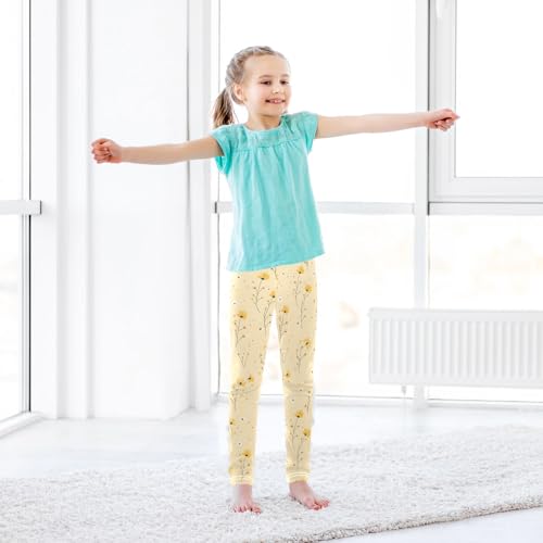 ALAZA Girls' Leggings Children's Yoga Pants Skinny Printed Dance Little Flower Yellow Comfortable 4T 6