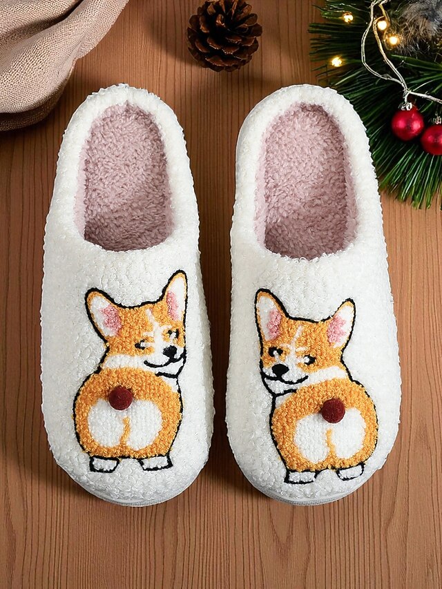 Women's Cozy Indoor Slippers with Corgi Embroidery – Cute Warm House Shoes for Winter and Lounging 24