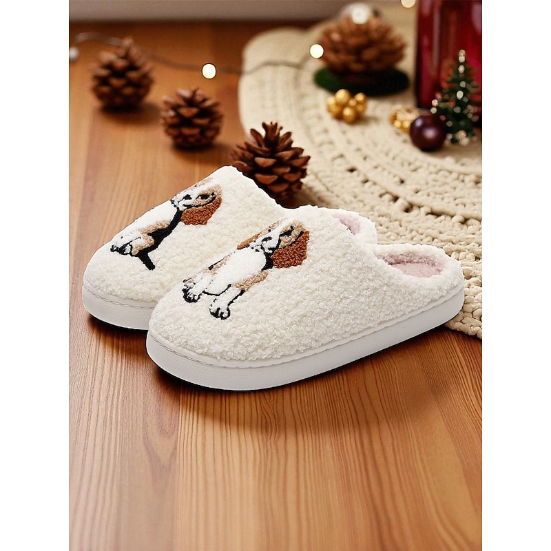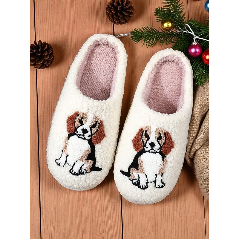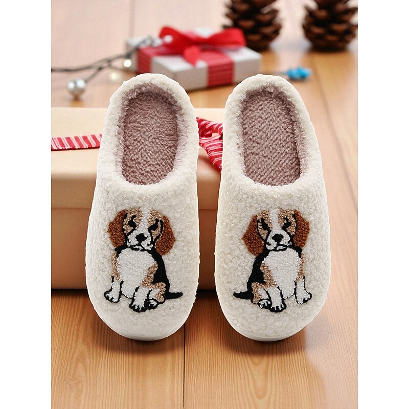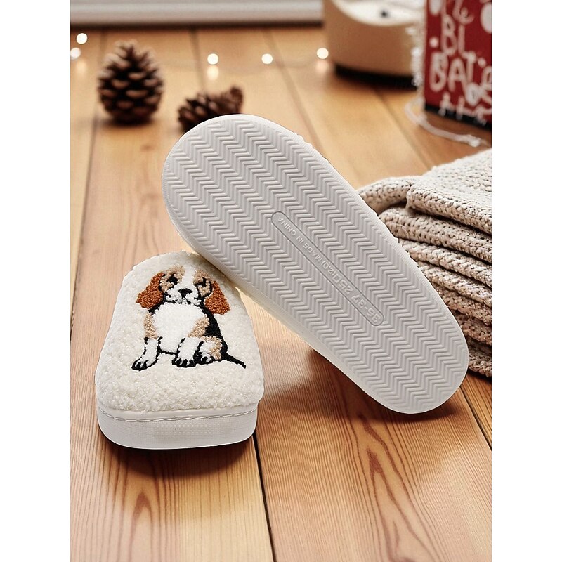 HOT ! Women's Cozy Indoor Slippers with Corgi Embroidery – Cute Warm House Shoes for Winter and Lounging