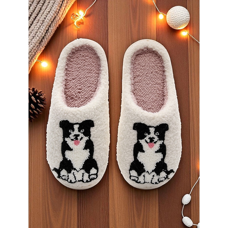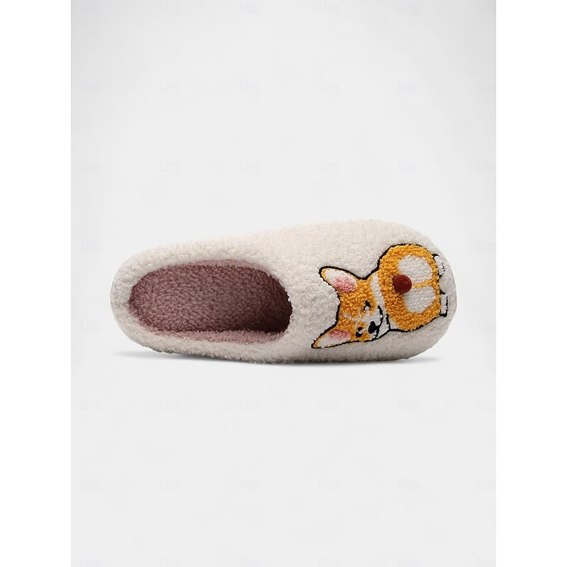 Women's Cozy Indoor Slippers with Corgi Embroidery – Cute Warm House Shoes for Winter and Lounging 32