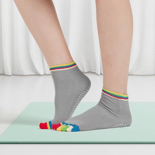jeuhut Grip Yoga Toe Socks for Women, Non Slip Anti Skid Sticky Grippy Toe Separator Sock for Pilates Barre Dance Ballet 3