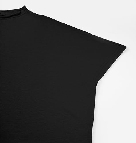 • Top: short dolman sleeve look like capelet slouchy fit with little high neck; pants: wide legs sweatpants with relaxed straight silhouette, mid-rise, ankle-length legs