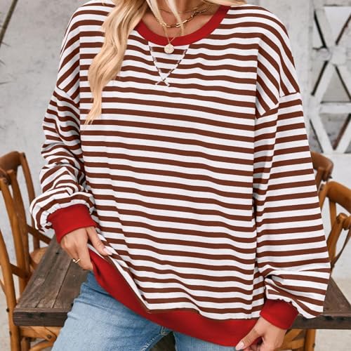 Commencu Womens Stripes Color Block Sweatshirts Crewneck Pullover Tops Loose Long Sleeve Casual Streetwear for Fall Winter 2