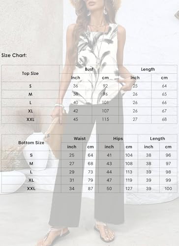 HOT ! Women's 2 Piece Outfits Green Sleeveless Double Layer Top and Leaf Print Wide Leg Pants Lounge Sets 2025 Summer Trendy
