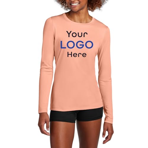 HOT ! Custom Women's Posi-UV® Pro Long Sleeve Tee - Personalized UPF 50 Sun Protection, Moisture-Wicking Performance Shirt - Design Your Own Logo/Text.