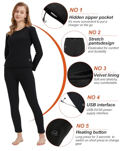 Women's Heated Thermal Underwear Set, USB Women's Electric Thermal Heated Long Johns Set with Battery Pack 5