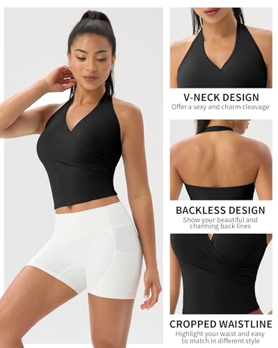 Workout Crop Tank Tops for Womens V-Neck Sleeveless Shirts Halter Longline Backless Underwear for Casual Sports Fitness Yoga 3