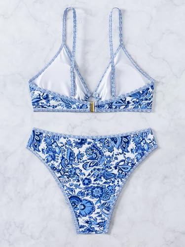 Tainehs Women's Two Piece Bikini Sets O Ring Front Top Ditsy Floral Triangle Swimsuits Cheeky Bathing Suit 2