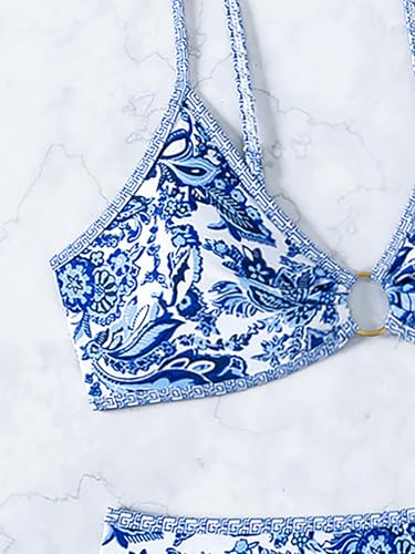 Tainehs Women's Two Piece Bikini Sets O Ring Front Top Ditsy Floral Triangle Swimsuits Cheeky Bathing Suit 3