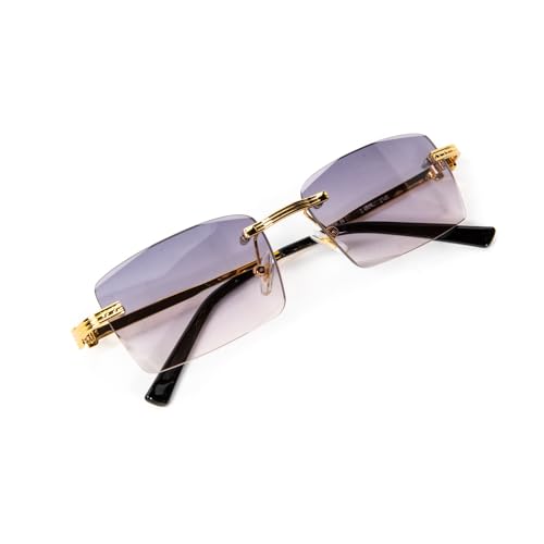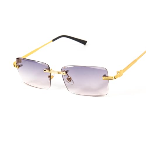 • RIMLESS PURPLE TINT SUNGLASSES: The rimless frame and delicate gold metal temples makes these sunglasses look incredible stylish. The thin small rectangular Gradient design, it's super stylish,and match for any look,makes you the most glamorous of the crowd.