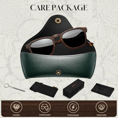 • Gift Package Ready & Sized to Fit: Exquisite package includes Green PU leather hard case, cleaning cloth, soft fiber pouch, mini screwdriver and box; frame width 140mm, lens height 46mm, designed to fit most faces