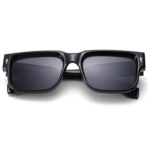 • Revemo Thick Frame Rectangle Sunglasses:Retro-inspired chunky design with arrow rivet accents creates instant 90s nostalgia. The 8mm acetate frame provides full UV400 protection, while 53mm polarized lenses reduce glare for driving, beach days, and urban adventures.
