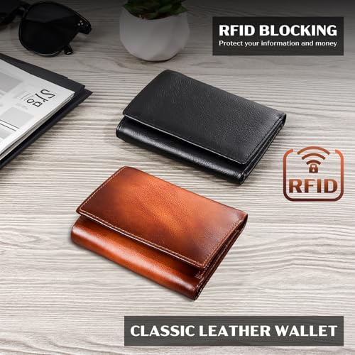 HOT ! Mens Trifold Leather Wallet | Top Genuine Leather Trifold Wallets for Men and Women | RFID Blocking Leather Wallet | ID Wallet | Thoughtful Gift for Men | Brown Wallet