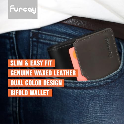 • SLIM AND MINIMALISTIC WALLET: Measuring at 3.14 inches x 3.9 inches, Furcay leather bifold wallets for men is perfect for daily use. Keep your cash and cards organised with 6-10 Card pocket and a cash compartment.