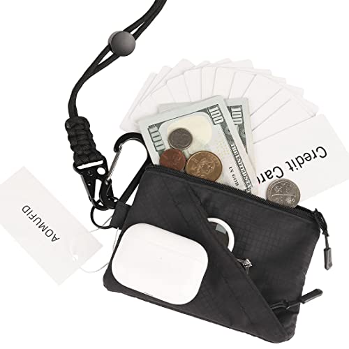 Lanyard Slim Minimalist Wallet for Men Women with RFID Blocking protector Wallets travel security Card Holder for Water-resistant Keychain Purse(Black) 6