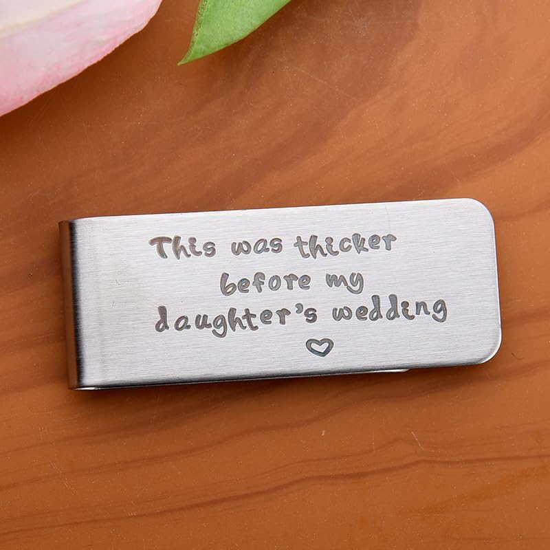 • Funny Fathers Day Gifts for Dad from Daughter: This father of the bride cash clip funny engraved with ''this was thicker before daughter's wedding'', dad father daddy birthday gifts from daughter, daddy dad father fathers day gifts for father of the bride stepfather stepdad, wedding gift for father of the bride