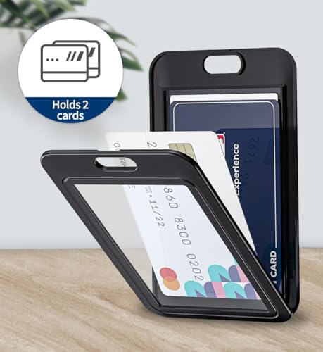 Dual Sided Window Vertical Hard Plastic Case Black Card Protective Pouch for Office School ID Credit Cards Proximity Key Cards Driver's License and Passes, 1 Pack 2
