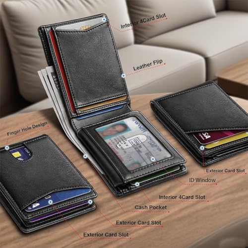 Vintage Bifold Wallet for Men with ID Window and Card Slots Slim Minimalist Design for Business Travel Everyday Use(Black) 4