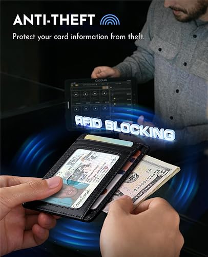 • RFID BLOCKING WALLET - Keeps your vital information secure, Our high-end RFID blocking insulation prevents electronic pickpocketing and identity theft, and your credit cards are protected from RFID theft (specifically 13.56 MHz RFID / NFC standard)