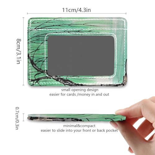 Chinese Ink Painting Tree Beige leather men's slim wallet With ID Window RFID Blocking card holder for men&women 2