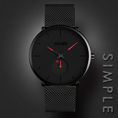 Gosasa Mens Watches Ultra Thin Wrist Watches for Men Minimalist Waterproof Quartz Analog Stainless Steel Mesh Band Watch (Red) 6