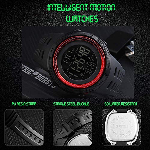 Gosasa Men's Digital Plastic Sports Watch Waterproof Military Stopwatch Countdown Watches for Men (Red) 5