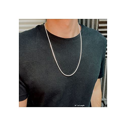 More information about ARGENTO REALE Sterling Silver 2.5MM-5MM Solid Franco Chain Necklace, Round Box Link Chain, Rhodium Necklace, Sterling Silver Necklace 18-30