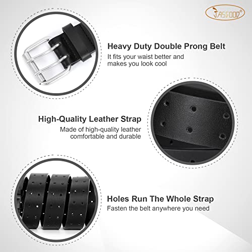 HOT ! JASGOOD Men Double Prong PU Leather Belt Casual Work Heavy Duty Belt Double Grommet Holes Belt for Jeans