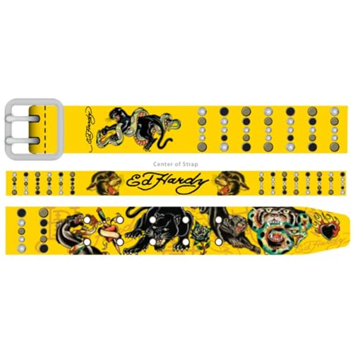HOT ! ED HARDY Men's 38mm Panther & Snake Print Studded Dual Prong Buckle Belt