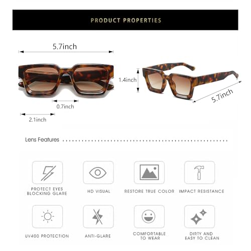 • 【UV400 Defend】Men's and women's square frame sunglasses UV400 protective lenses can block 99% of harmful UVA and UVB rays, not only is it easy to carry and easy to clean when you go out, but it also keeps your eyes healthy and ensures natural and clear vision