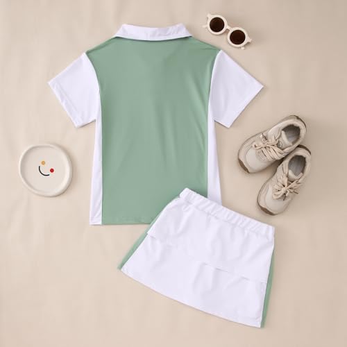 • 【Girls Tennis Skirt and Shirt Set】 Girls tennis dress is a color-blocking design with vibrant colors. The short sleeve girls athletic shirts top features a button-up polo collar that can be easily adjusted to a comfortable position during sports. Athletic skorts/skirts feature a double-layer design and built-in shorts with breathable holes.