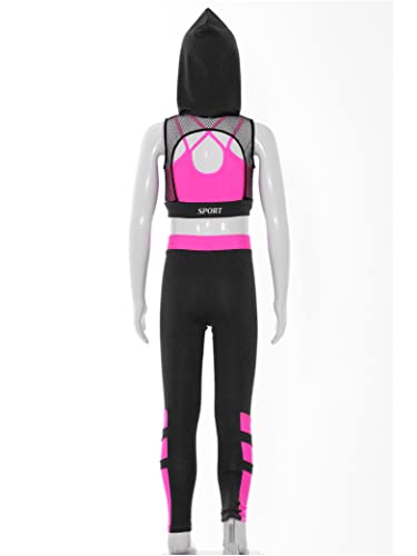 Hedmy Girls Sports Dance Outfit 3 Piece Activewear Set Sleeveless Mesh Hoodie Tank Top and Athletic Leggings 6