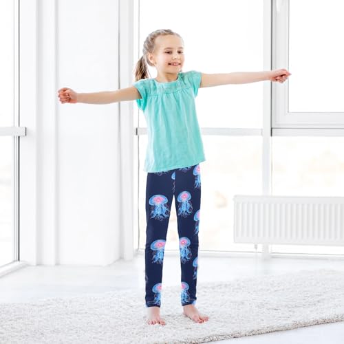 ALAZA Girls' Leggings Children's Yoga Pants Skinny Printed Dance Jellyfish Darkblue Comfortable 4T 4