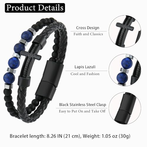 • Cross Leather Bracelet: Men's cross bracelet consists of braided leather, black cross, and natural stone beads. It is stylish and unique, perfectly enhancing your charm, and suitable for wearing on various occasions.