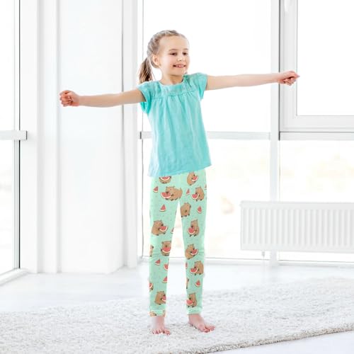 Wusikd Cute Capybara Girls' Leggings Toddler Doodles Watermelon Kids Yoga Pants Dance Active Tights 4T 7
