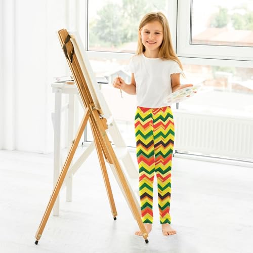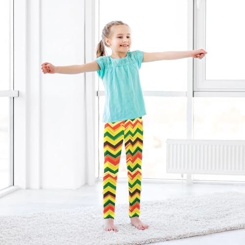 KLL Jamaican Color Zigzag Pattern Girls Athletic Leggings Casual High Waisted Workout Pants Sports 6