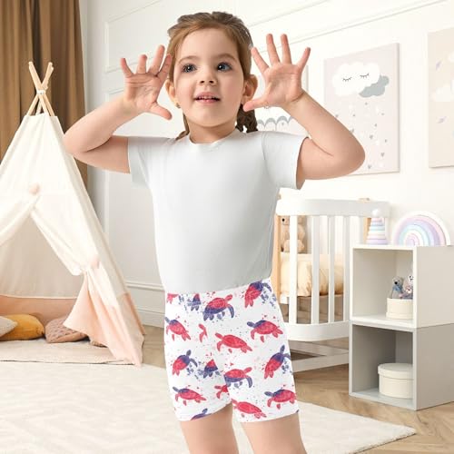 Watercolor Red Turtle Pattern Girls Shorts Elastic Waist Sports Shorts Girls Leggings Pants for 4-10 Years 4