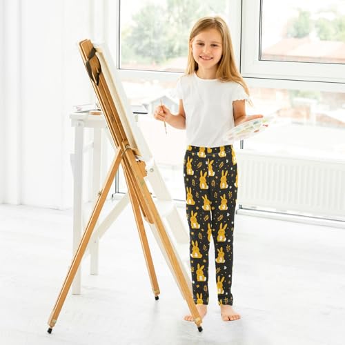 Cute Simple Yellow Bunny Girls Leggings Soft Comfortable Athletic Leggings Dancing Pants for 4-10 Years 4