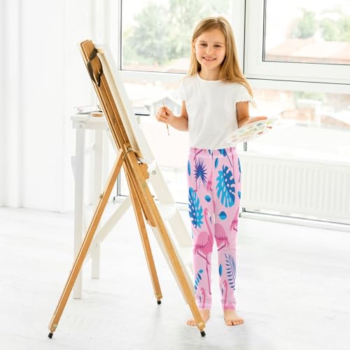 Bolaz Toddler Girls Leggings Printed Yoga Pants Leggings Bule Leaves Pink Flamingos for Kids 7