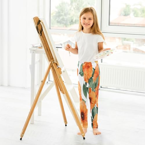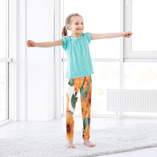 Toddler Girls Leggings Printed Yoga Pants Leggings Orange Flowers Drawn in Watercolor for Kids 4