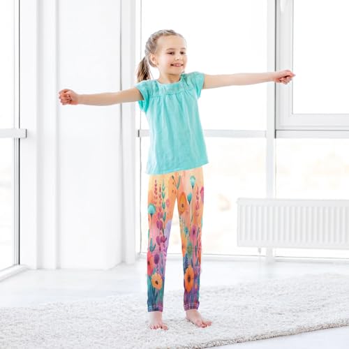 Toddler Girls Leggings Printed Yoga Pants Leggings Cartoon Wildflowers for Kids 5