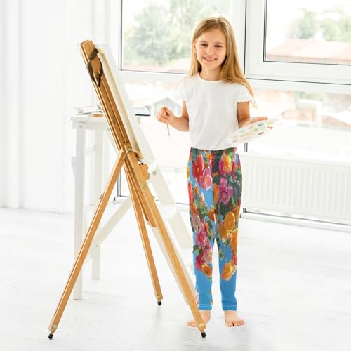 Toddler Girls Leggings Printed Yoga Pants Leggings Flower in Blue Sky for Kids 4