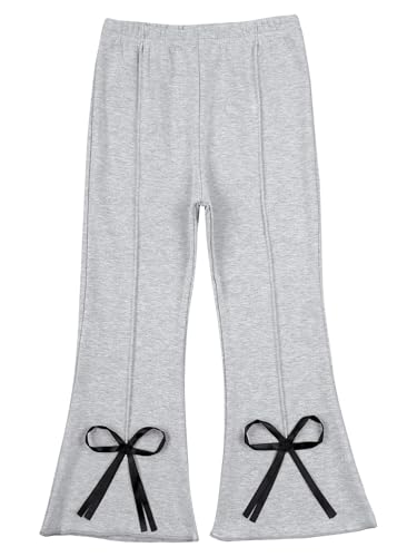 JEATHA Kids Girls Ribbed Bell Bottoms Bowknot Flared Pants Trousers Elastic Waistband Leggings Fall Clothes 6