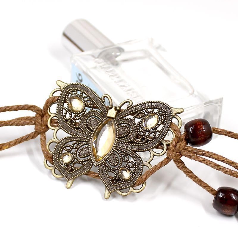 • Unique hand braid coffee wax rope, decorated with finely polished butterfly alloy and wooden bead, vintage and exquisite